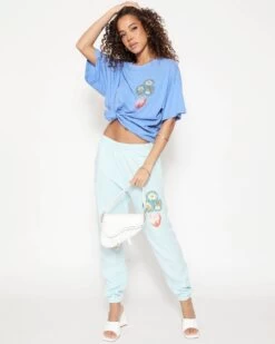 French terry fabric in dusty pink. Mid-rise shorts with interior adjustable drawstring, side pockets, and a raw edge hem. Features puff print and embroidered details.
