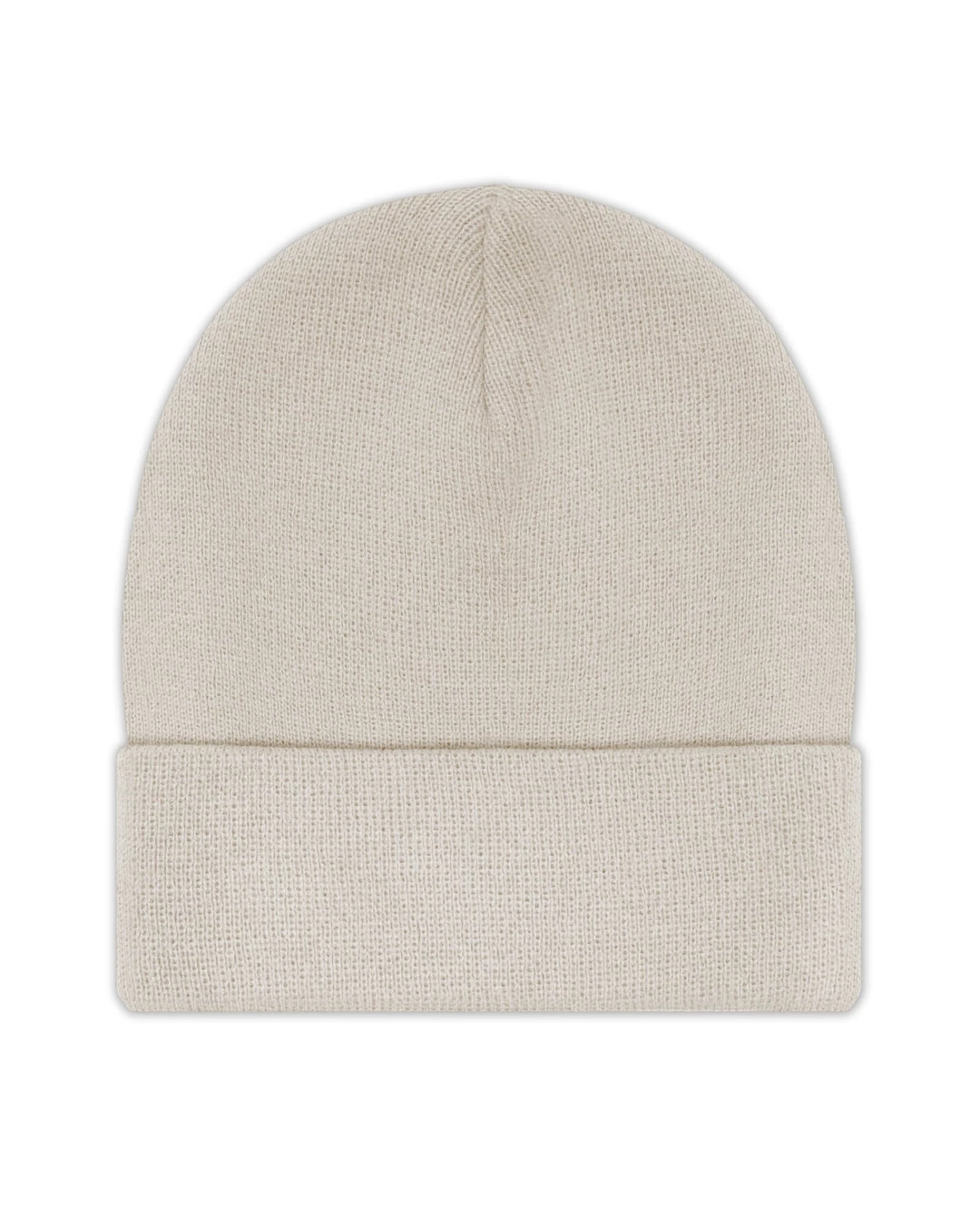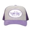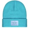 Light taupe beanie with purple Boys Lie logo patch.