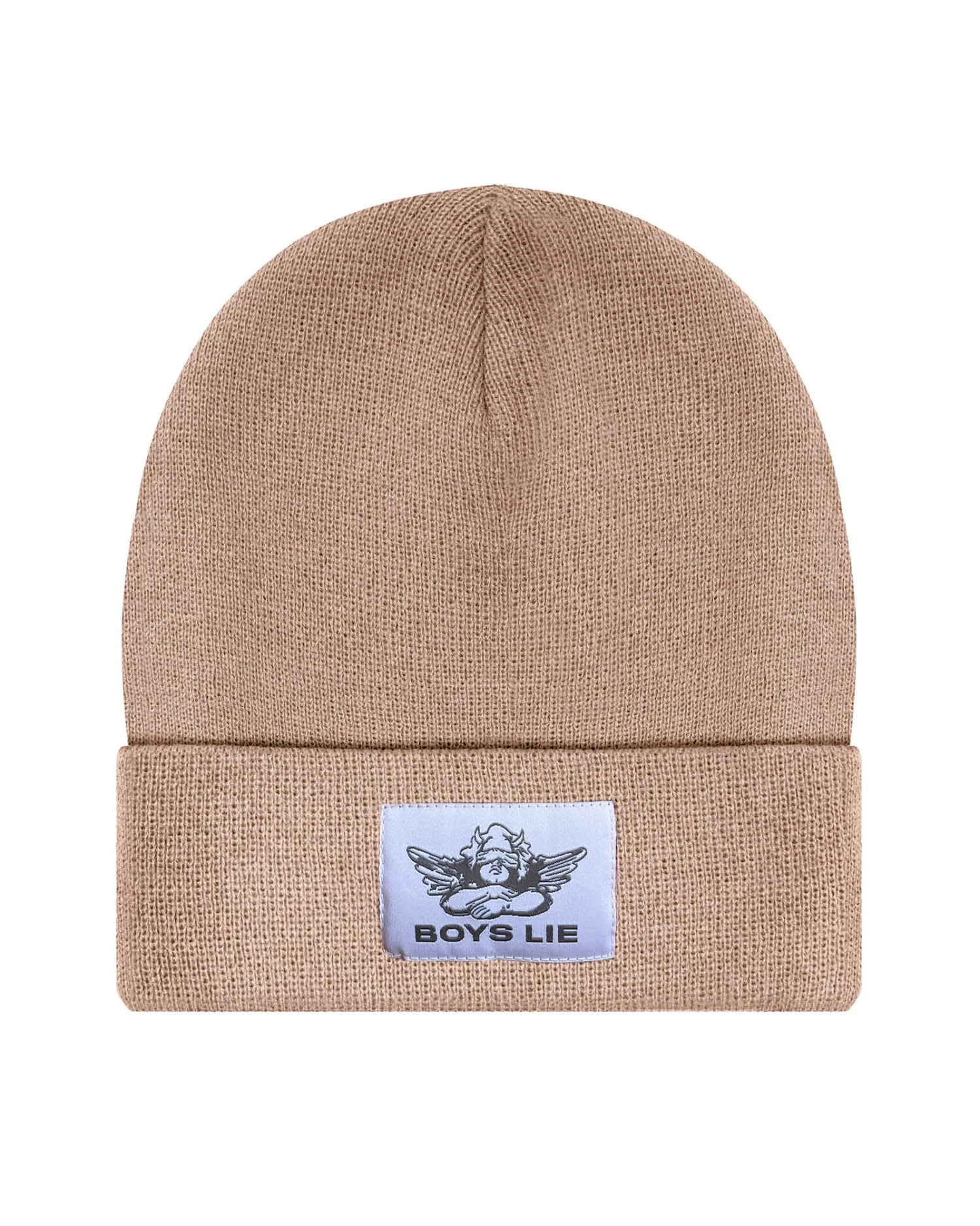 Pink / nude beanie with light pink Boys Lie logo patch.