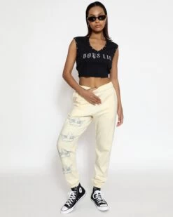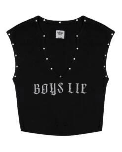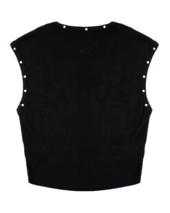 Black ribbed crop tank with a V neckline and silver stud details.Â