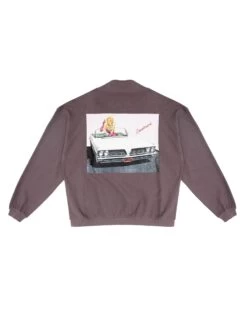 Inside out french terry fabric in dusty purple. Henley style crewneck with button details, drawstring, and ribbed cuffs and hem.Â