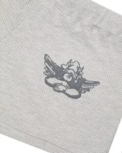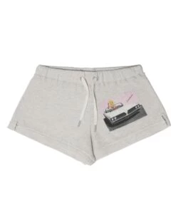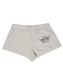 Soft thermal fabric in heather grey. Mid-rise shorts with adjustable drawstring and a puff print logo. Â
