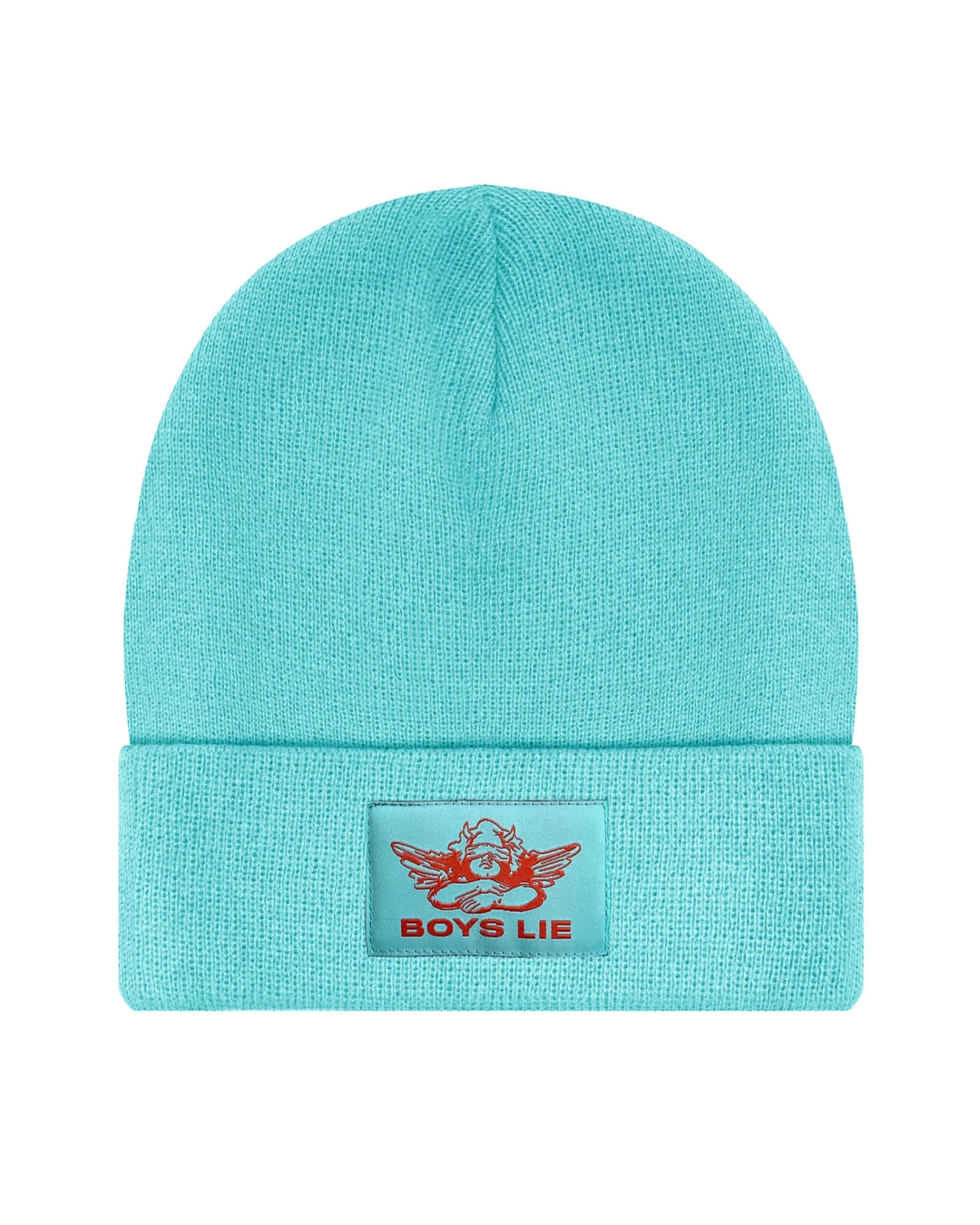 Seafoam green beanie with seafoam Boys Lie logo patch.