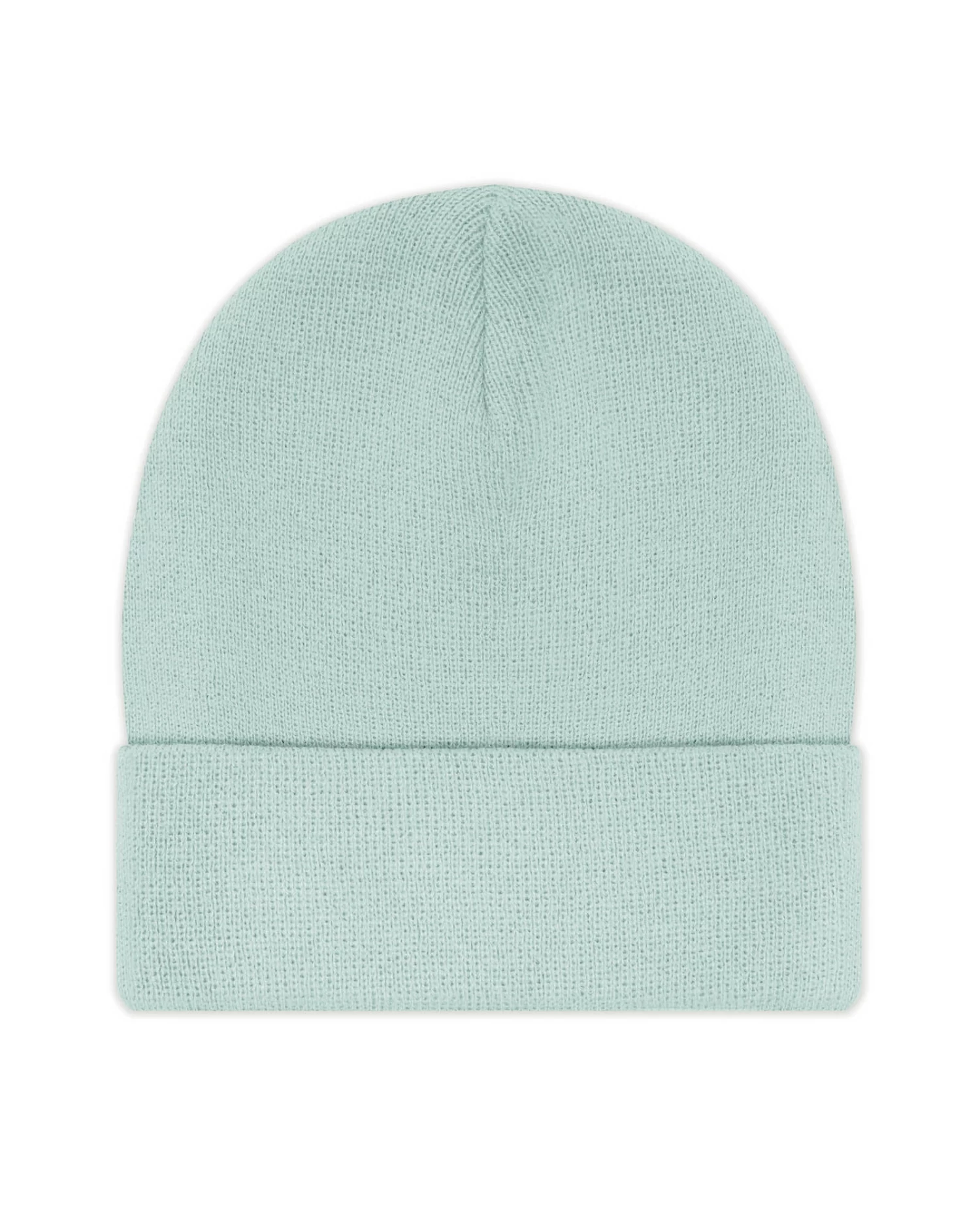 Soft seafoam blue beanie with light pink Boys Lie logo patch.