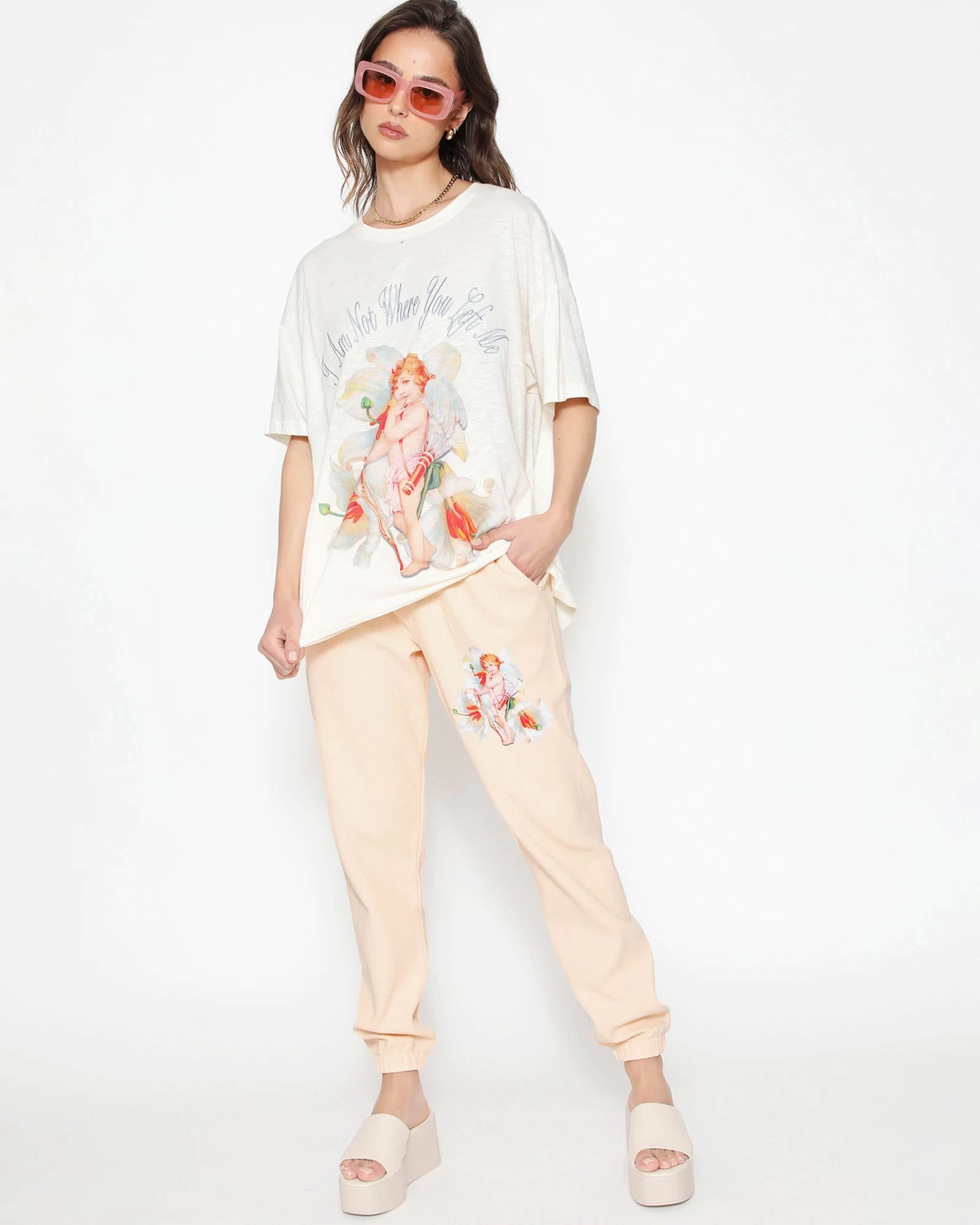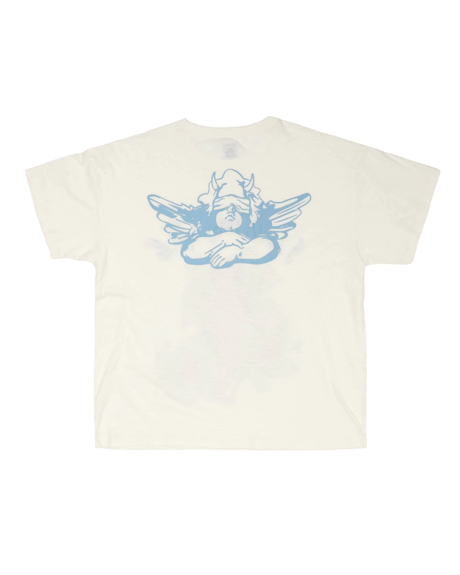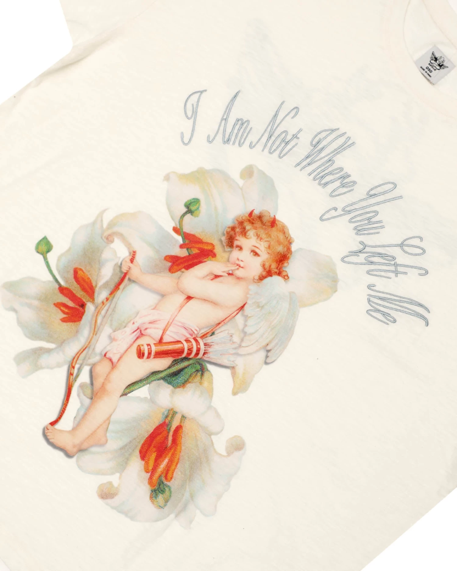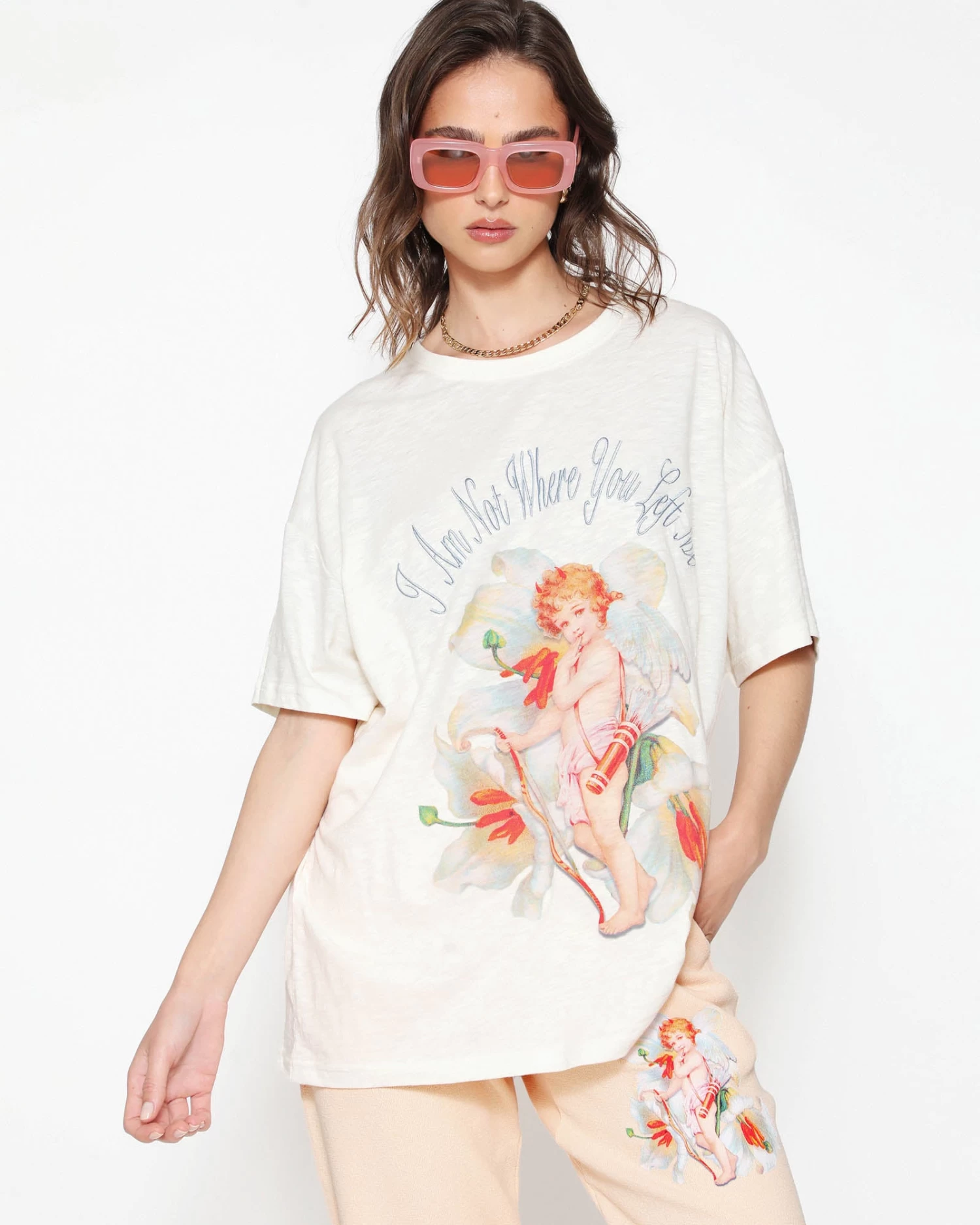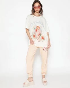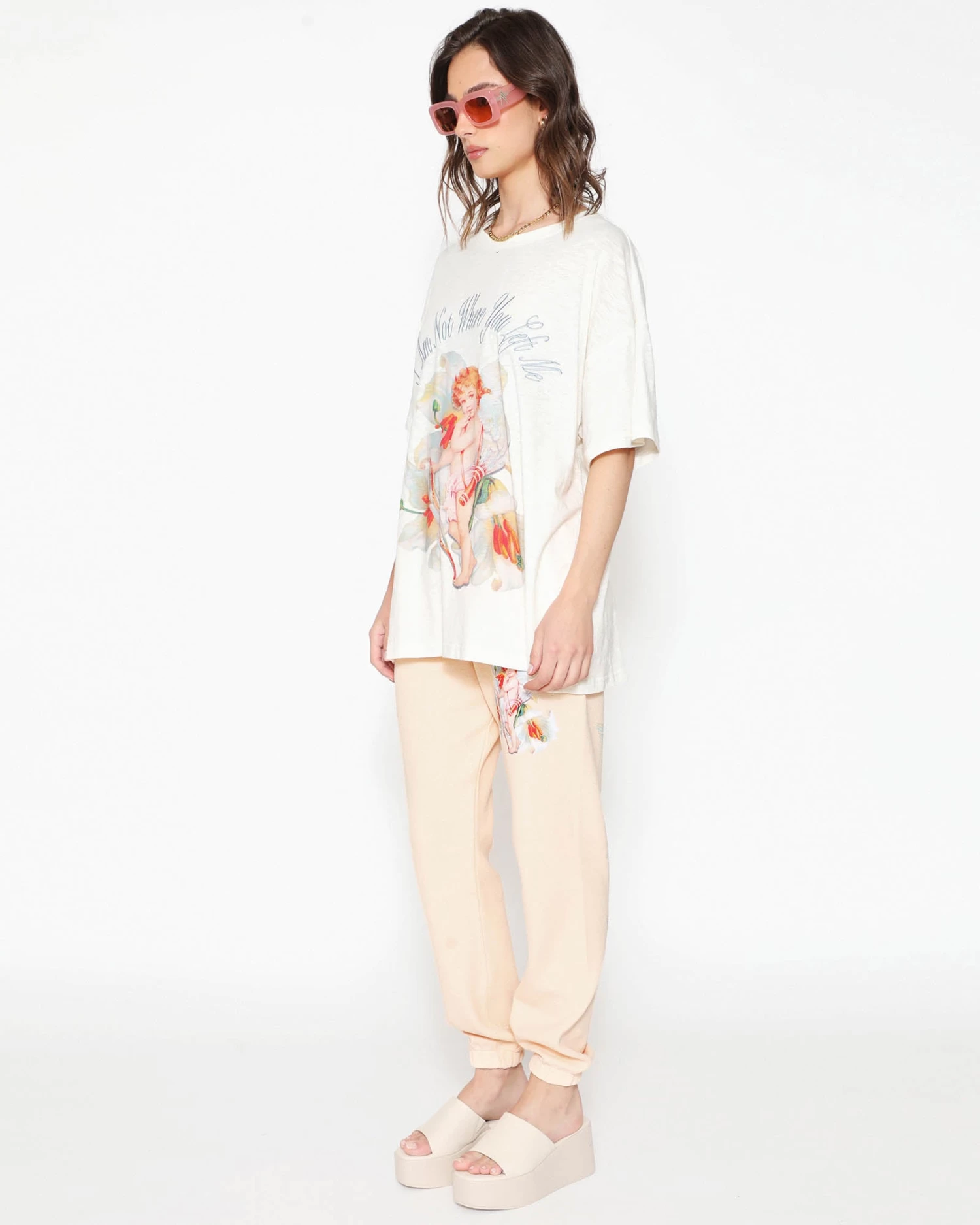Lightweight and slightly sheer cream tee in cotton slub jersey with an oversized fit. Features embroidery.