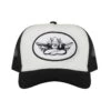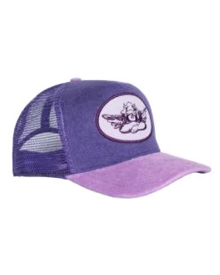 Dark purple trucker hat with lavender patch and purple terry. Adjustable snapback.Â