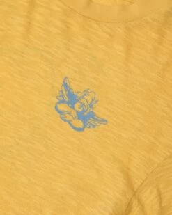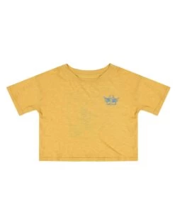 Cotton slub cropped baby tee in green. Lightweight and slightly sheer with distressed graphics.Â
