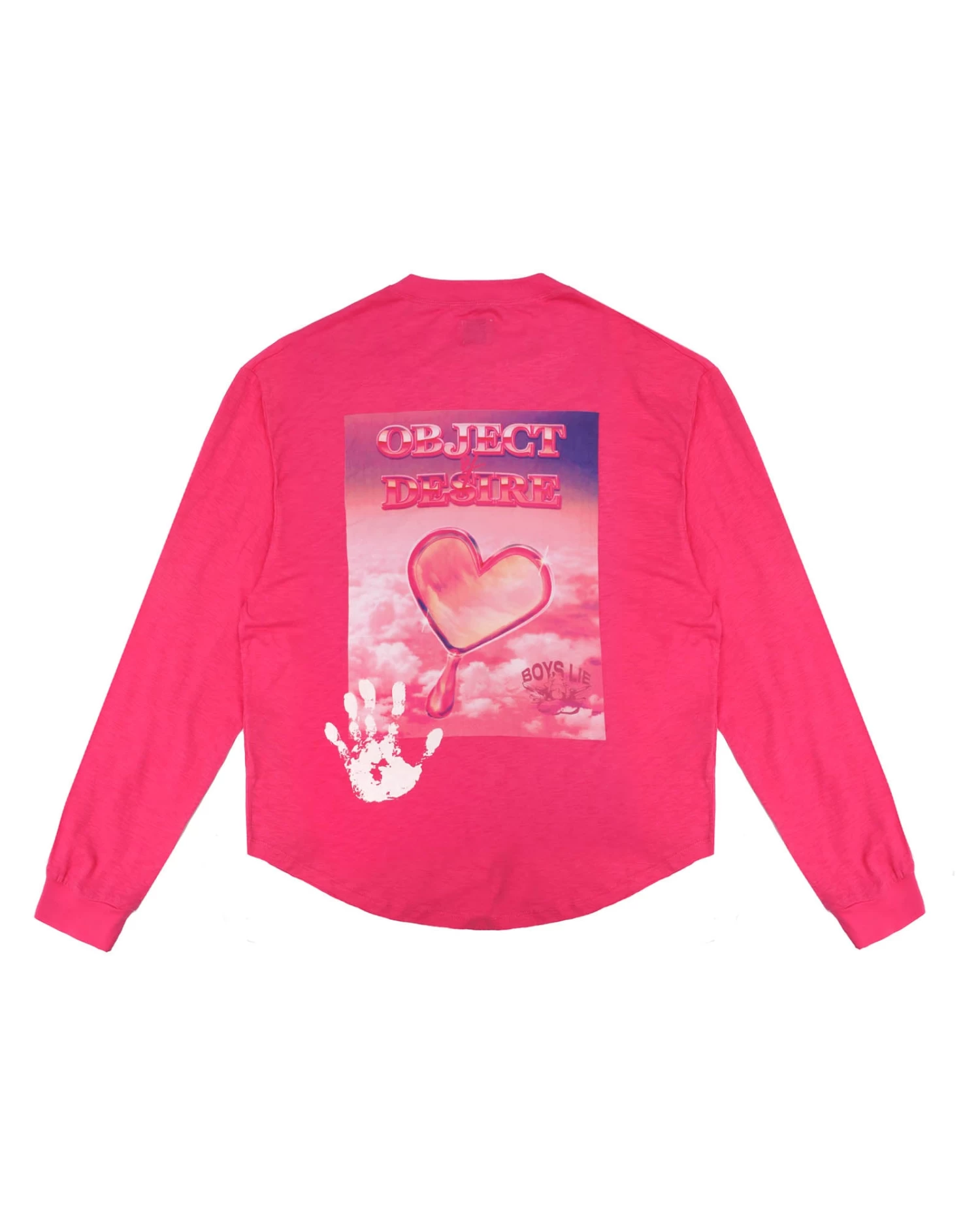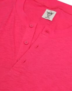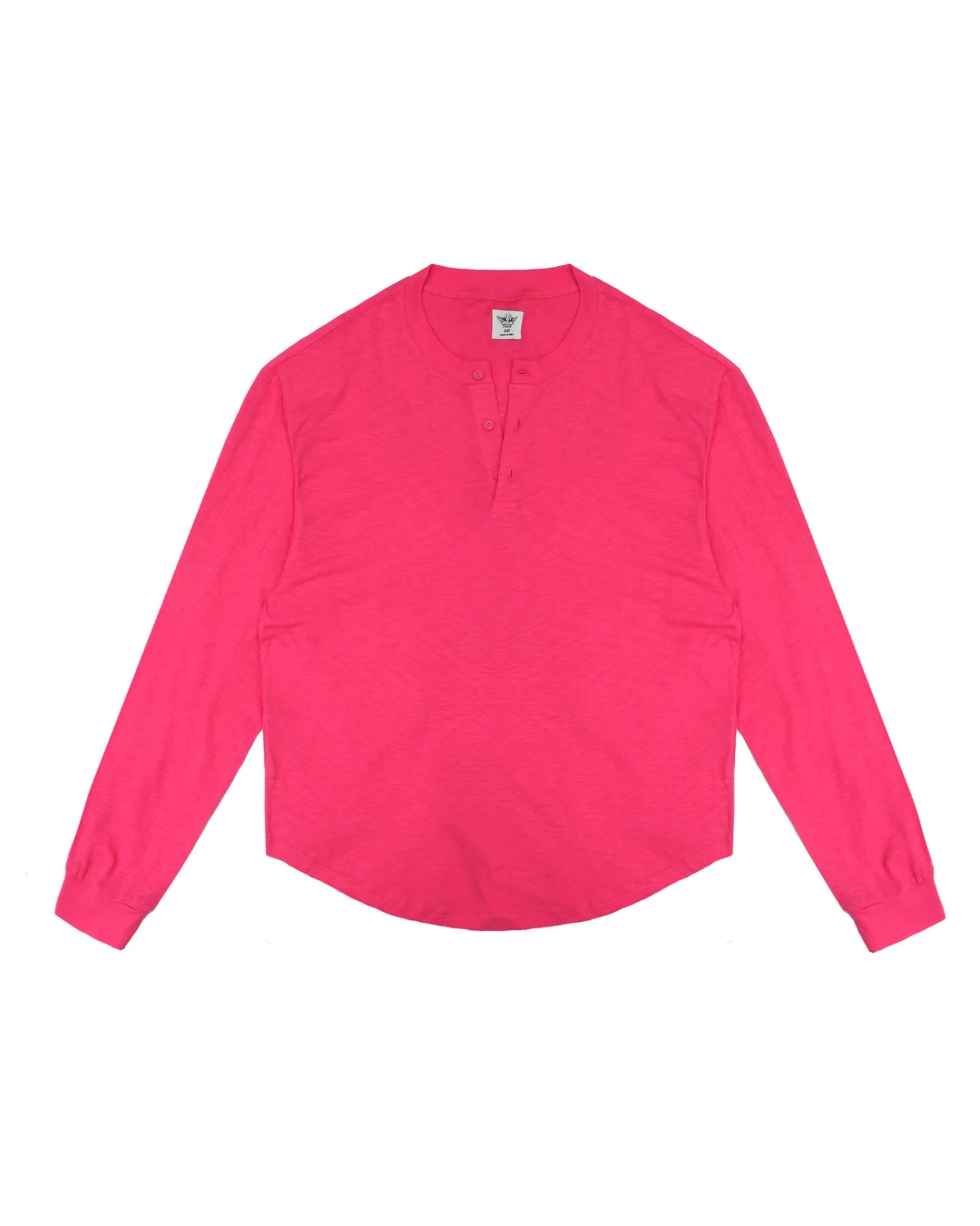 Oversized long sleeve henley in hot pink. Front button details and a curved hem.