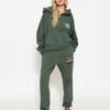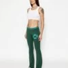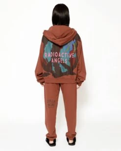 Mid-weight fleece fabric in deep red. High rise sweatpants with back and side pockets, elastic waistband and cuffs. Puff print front detail.Â