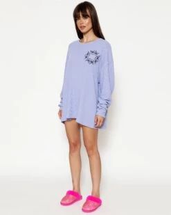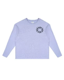 Oversized thermal long sleeve tee in purple with rhinestone embellishments.