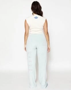 Nude ribbed crop tank with a V neckline and silver stud details.Â