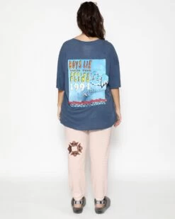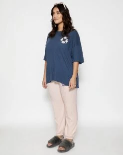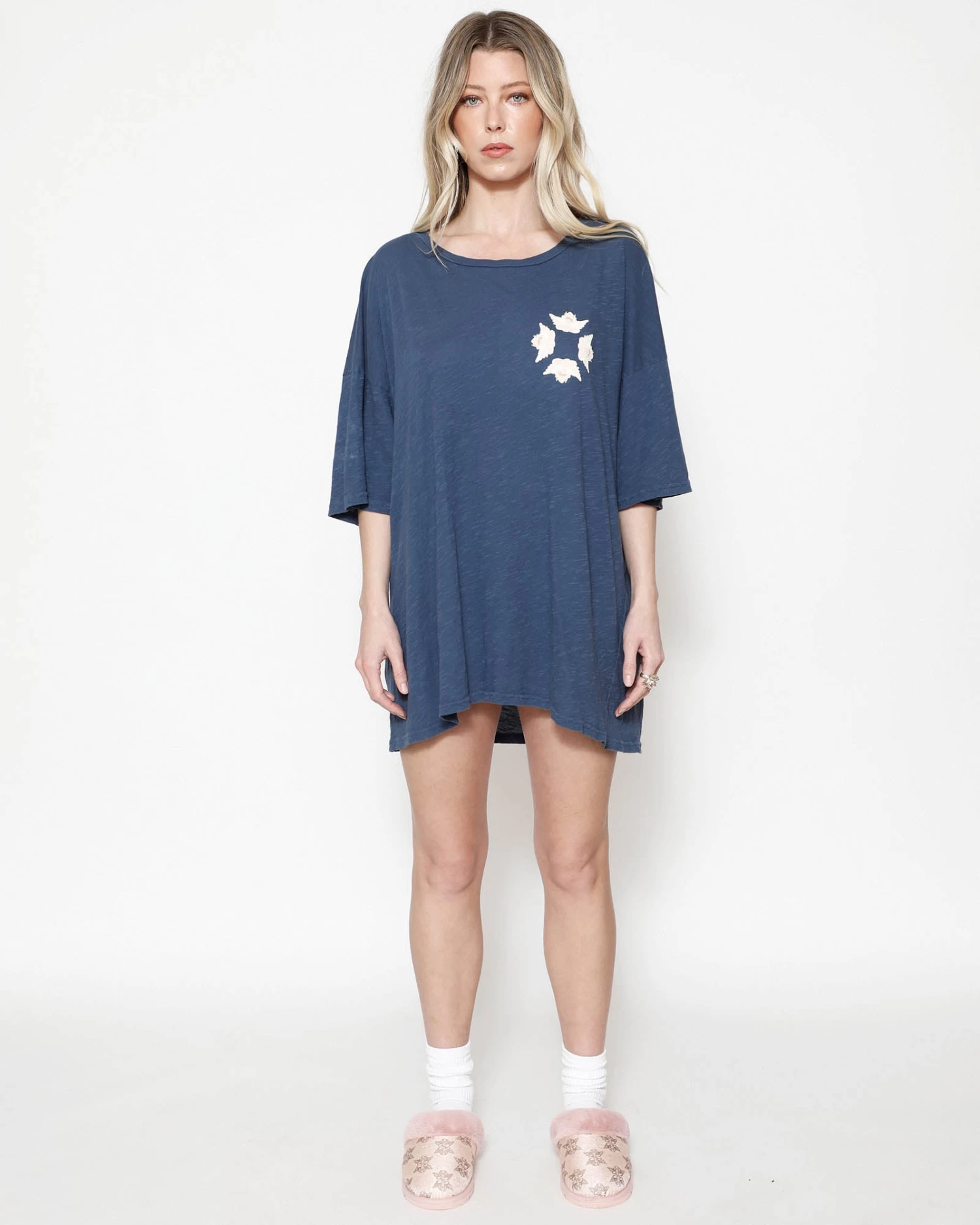 Lightweight and slightly sheer navy tee in cotton slub jersey with an oversized fit.