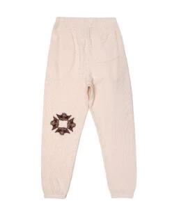 Super soft thermal fabric in peach. High rise sweatpants with back and side pockets, elastic waistband and cuffs. Embroidered back logos.Â